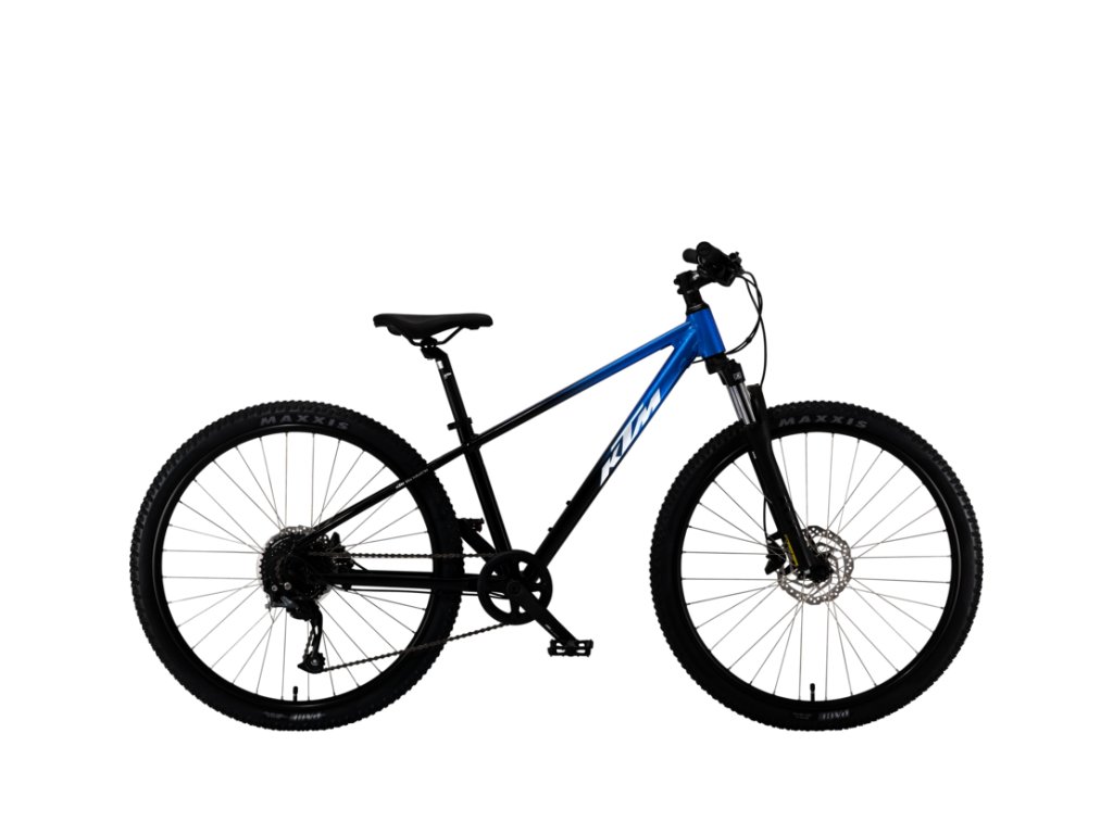 Špičkové juniorské horské kolo KTM Wild Speed 26 v dravé barevné kombinaci Black Blue. Postaveno na lehkém hliníkovém rámu s geometrií optimalizovanou pro děti. Ideální přechodový model pro mladé cyklisty (výška jezdce 135–155 cm), kteří chtějí opravdový výkon v terénu, nízkou váhu a spolehlivé osazení.